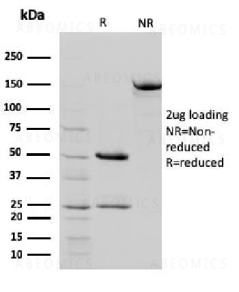Fig. 1: SDS-PAGE Analysis Purified STAT5B Mouse Monoclonal Antibody (STAT5B/2657). Confirmation of Integrity and Purity of Antibody.