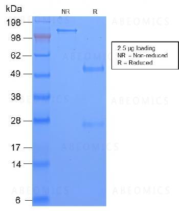 Fig. 1: SDS-PAGE Analysis Purified TAG-72 Rabbit Recombinant Monoclonal Antibody (CA72/2869R). Confirmation of Purity and Integrity of Antibody.