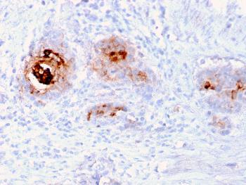 Fig. 1: Formalin-fixed, paraffin-embedded human Breast Carcinoma stained with TAG-72 Recombinant Mouse Monoclonal Antibody (rB72.3).