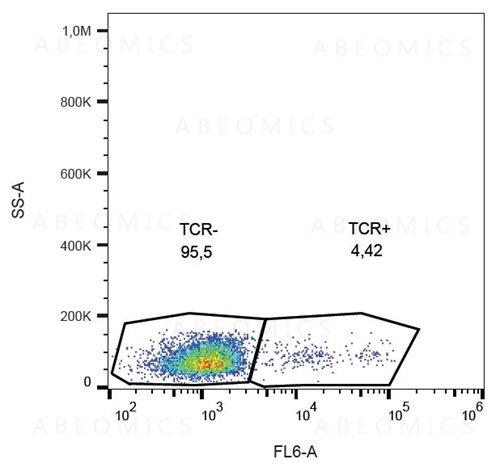 Figure 1: Flow cytometry analysis (surface staining) of human peripheral blood lymphocytes with anti-human TCR gamma/delta (B1) purified antibody (low endotoxin), GAM-APC