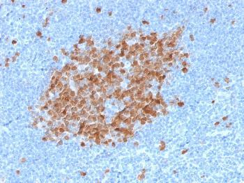 Fig. 1: Formalin-fixed, paraffin-embedded human Tonsil stained with Thymidylate Synthase Mouse Monoclonal Antibody (TYMS/1884).