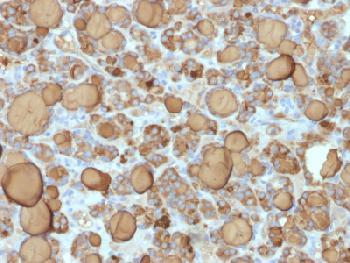 Figure 1: Formalin-fixed, paraffin-embedded human Thyroid Carcinoma stained with Thyroglobulin Rabbit Recombinant Monoclonal Antibody (TGB/1968R).