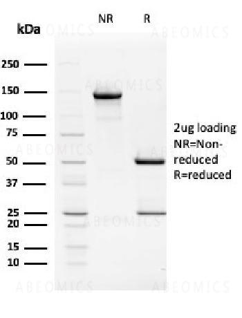 Fig. 1: SDS-PAGE Analysis Purified TIM3 Mouse Monoclonal Antibody (TIM3/2399). Confirmation of Purity and Integrity of Antibody.