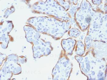 Fig. 1: Formalin-fixed, paraffin-embedded human Placenta stained with TIMP2 Monoclonal Antibody (SPM356).