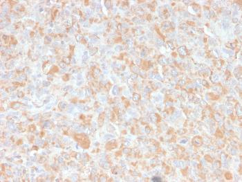 Fig. 1: Formalin-fixed, paraffin-embedded human Histiocytoma stained with TNF alpha Mouse Monoclonal Antibody (4C6-H8).