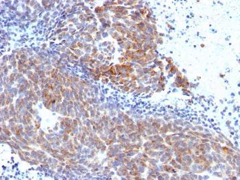 Immunohistochemistry (Formalin-fixed) (1-2ug/ml for 30 minutes at RT)(Staining of formalin-fixed tissues requires heating tissue sections in 10mM Tris with 1mM EDTA, pH 9.0, for 45 min at 95°C followed by cooling at RT for 20 minutes);