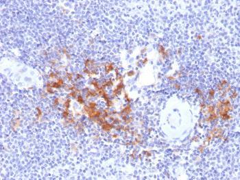 Fig. 1: Formalin-fixed, paraffin-embedded human Spleen stained with TRAF1 Mouse Monoclonal Antibody (TRAF1/2770).