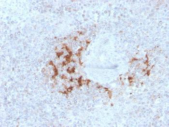 Fig. 1: Formalin-fixed, paraffin-embedded human Spleen stained with TRAF1 Mouse Monoclonal Antibody (TRAF1/3298).