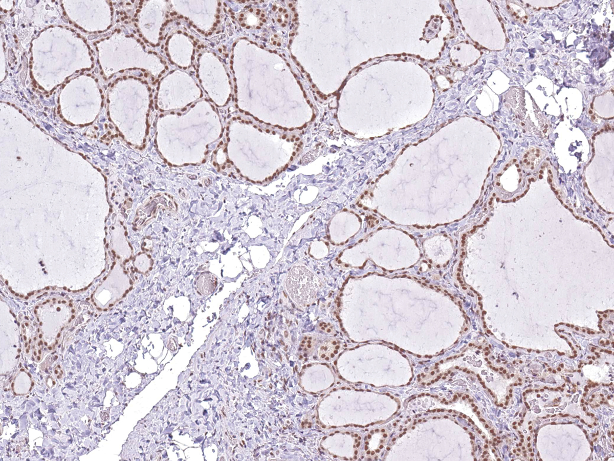 Figure 1: Immunohistochemical analysis of TTF-1 (IHC414) on Thyroid Gland