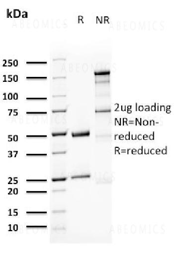 Fig.1: SDS-PAGE Analysis Purified Uroplakin 1A Mouse Monoclonal Antibody (UPK1A/2923). Confirmation of Purity and Integrity of Antibody.