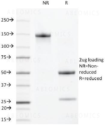 Fig. 1: SDS-PAGE Analysis Purified VEGFR2 Rat Monoclonal Antibody (DC101). Confirmation of Purity and Integrity of Antibody.
