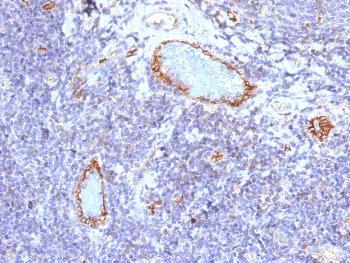 Fig. 1: Formalin-fixed, paraffin-embedded human Tonsil stained with vWF Mouse Monoclonal Antibody (VWF/1465).
