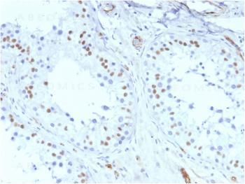 Fig. 1: Formalin-fixed, paraffin-embedded human Testis stained with Wilm's Tumor Mouse Recombinant Monoclonal Antibody (rWT1/857).