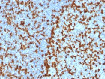 Fig. 1: Formalin-fixed, paraffin-embedded human Tonsil stained with ZAP70 Mouse Monoclonal Antibody (ZAP70/2047).