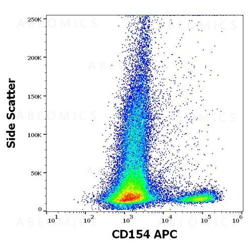 Figure 1: Flow cytometry surface staining pattern of human stimulated (PHA + ionomycin) peripheral blood mononuclear cells stained using anti-human CD154 (24-31) APC antibody (10 μl reagent per million cells in 100 μl of cell suspension).