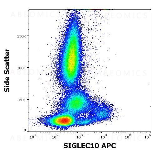 Figure 1: Flow cytometry surface staining pattern of human peripheral whole blood stained using anti-human SIGLEC10 (5G6) APC antibody (10 μl reagent / 100 μl of peripheral whole blood).