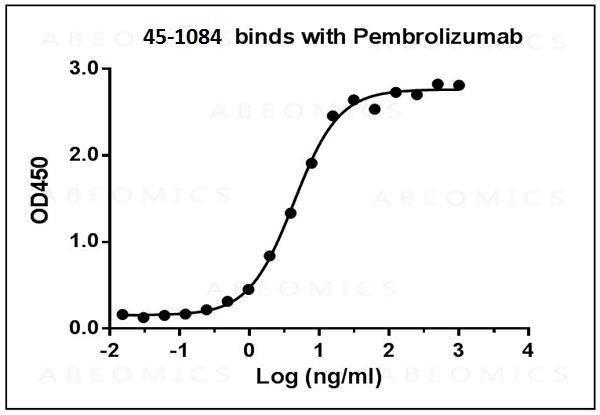 Figure-1 : ELISA binding of Pembrolizumab antibody (Clone: 10E12C6) binds with Pembrolizumab, Coating antigen: Pembrolizumab at 1 µg/ml, Pembrolizumab antibody dilution start from 1,000 ng/ml, EC50= 5.77 ng/ml.