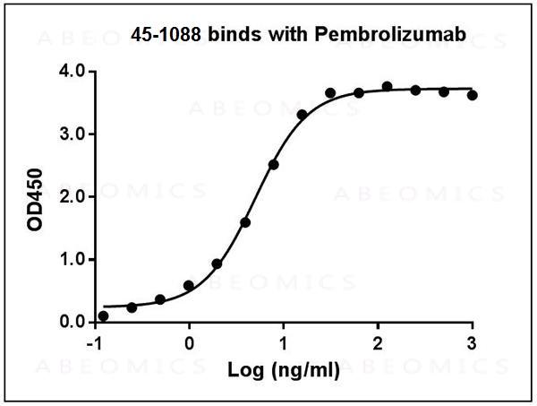 Figure-1 : ELISA binding of Pembrolizumab antibody (Clone: 90G12F8) binds with Pembrolizumab, Coating antigen: Pembrolizumab at 1 µg/ml Anti-Pembrolizumab antibody dilution start from 1,000 ng/ml,EC50= 5.01 ng/ml.