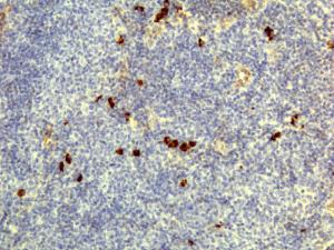 Figure 1: Immunohistochemistry of Human Lymphoid Tissue using Anti-Human IgD antibody Clone: RM123.