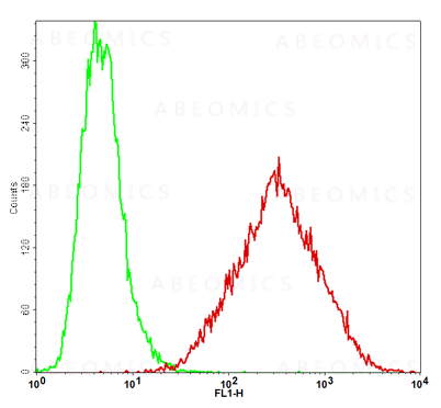 Fig-1: Detection of human CCR5 in the CHO-K1/CCR5 stable cell line . CHO-K1 cells (Green); CHO-K1/CCR5 (Red).