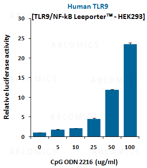 A. CpG ODN 2216-mediated human TLR9 activation in TLR9/NF-kB Leeporter™ – HEK293 cells (Figure 2).
