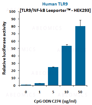 A. CpG ODN C274-mediated human TLR9 activation in TLR9/NF-kB Leeporter™ – HEK293 cells (Figure 2).