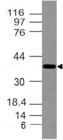 Fig-1: Expression analysis DLX3. Anti-DLX3 antibody (11-12024) was used at 2 µg/ml on C2C12 lysate.