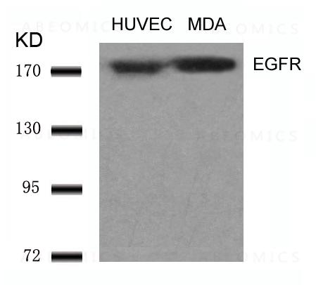 Figure 1: Western blot analysis of extracts from HUVEC and MDA cells using EGFR(Ab-1070) Antibody 35-1427 .