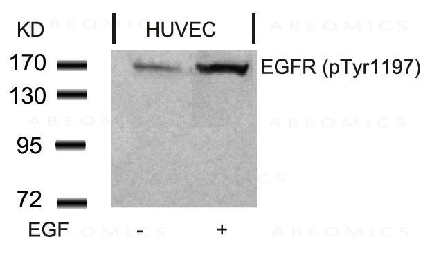 Figure 1: Western blot analysis of extracts from HUVEC cells untreated or treated with EGF using EGFR(Phospho-Tyr1197) Antibody 35-1213 .