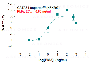A. Response of GATA3 Leeporter™ – HEK293 cells to phorbol 12-myristate 13-acetate (PMA).
