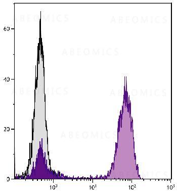 Figure 1: Human peripheral blood lymphocytes were stained with Mouse Anti-Human CD3 followed by Goat Anti-Mouse Ig, Human ads-Biotin followed by Streptavidin-FITC .