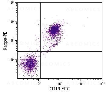 Figure 1: BALB/c mouse splenocytes were stained with Goat Anti-Mouse Kappa-PE and Rat Anti-Mouse CD19-FITC .