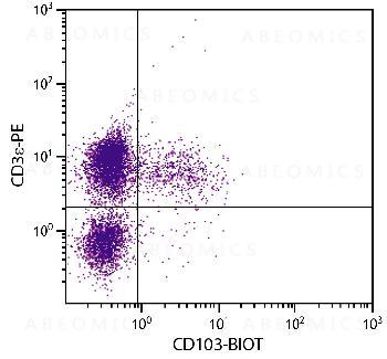 Figure 1: BALB/c mouse mesenteric lymph node cells were stained with Hamster Anti-Mouse CD103-Biotin and Rat Anti-Mouse CD3ε-PE followed by Streptavidin-FITC .