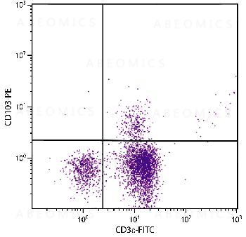 Figure 1: BALB/c mouse mesenteric lymph node cells were stained with Hamster Anti-Mouse CD103-PE and Rat Anti-Mouse CD3ε-FITC .