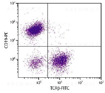 Figure 1: BALB/c mouse splenocytes were stained with Hamster Anti-Mouse TCRβ-FITC and Rat Anti-Mouse CD19-PE .