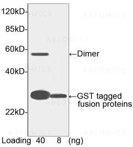 Figure-1 : Western blot analysis of HRP conjugated GST-tag Antibody at 1 µg/ml on GST-tagged fusion protein (40 & 8 ng).