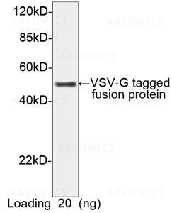 Figure-1 : Western blot analysis of HRP conjugated VSV-G Antibody at 1 µg/ml on VSV-G-tagged fusion protein (20 ng).