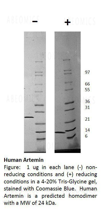 Artemin is a neurotrophin member of the glial cell line-derived neurotrophic factor (GDNF) ligand family. Artemin is highly expressed in the adult pituitary gland, placenta, and trachea, and shows low level expression in the brain, spinal cord, and peripheral tissues. Artemin signals through the RET receptor and GDNF family receptor alpha 3 (GFRalpha3) co-receptor complex to support neuronal survival.
