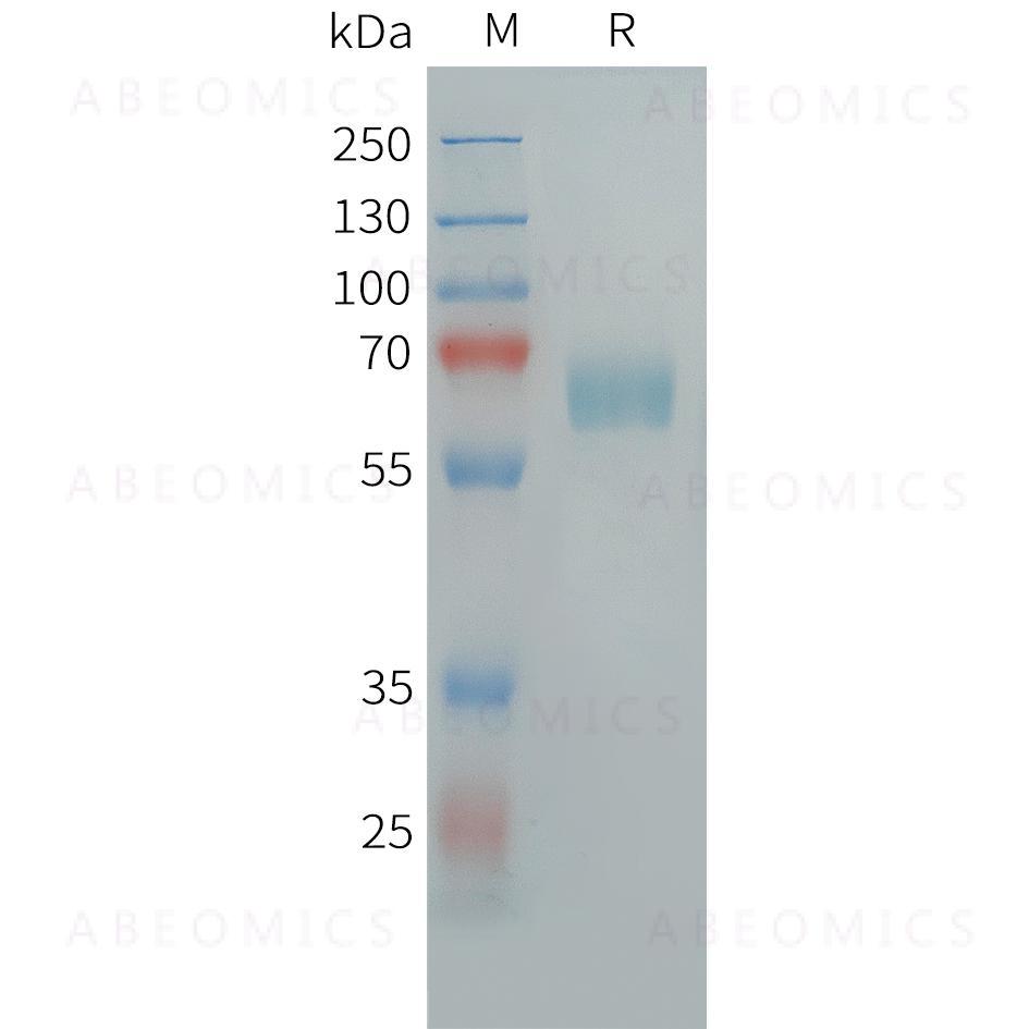 Molecular Characterization: mass of 54.9 kDa after removal of the signal peptide. The apparent molecular mass of hFc-CLEC10A is approximately 55-70 kDa due to glycosylation.