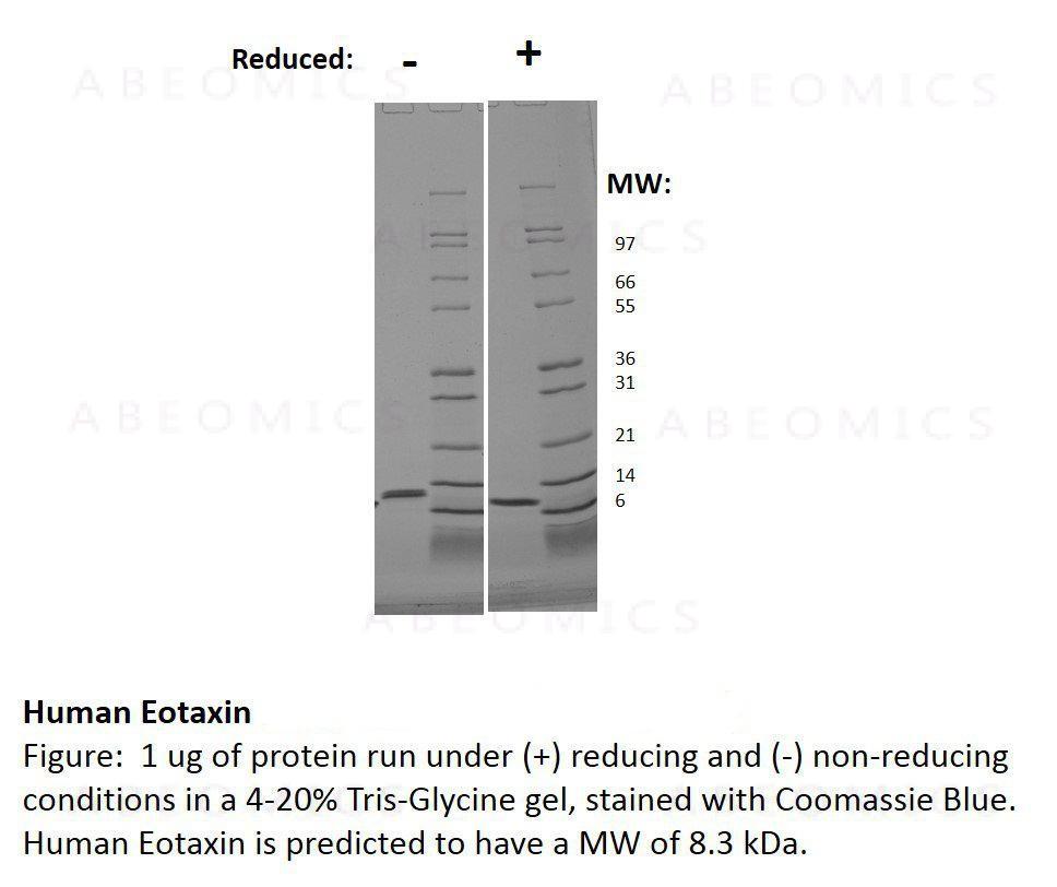 Eotaxin, also known as Eotaxin-1 and CCL11, is a chemokine that recruits eosinophils to sites of allergic inflammation. Eotaxin signals through the G protein-coupled chemokine receptors CCR2, CCR3, and CCR5. Eotaxin also negatively regulates adult neurogenesis, and high Eotaxin levels are associated with impaired learning and memory.