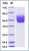 Fig.1: SDS-PAGE gel image of Human IL-10RA Protein. Stained with Coomassie staining.