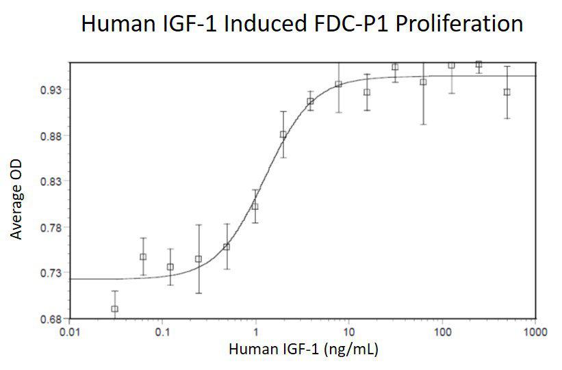 Insulin-like growth factor I (IGF-I) is a growth factor that is produced by the liver. IGF-1 production is stimulated by growth hormone (GH). IGF-I binds the insulin-like growth factor 1 receptor (IGF1R) and the insulin receptor to stimulate systemic body growth. IGF-I is one of the most potent activators of the AKT signaling pathway, which stimulates cell proliferation and inhibits programmed cell death. Mature human IGF-I is 100% homologous to bovine and porcine IGF-1 proteins.