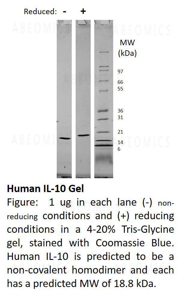 Interleukin 10 (IL-10) is an anti-inflammatory cytokine produced by macrophages and type 2 T helper (Th2) cells. IL-10 inhibits the production of pro-inflammatory cytokines such as interferon gamma (IFN-gamma), tumor necrosis factor alpha (TNF-alpha), interleukin 2 (IL-2), interleukin 3 (IL-3), interleukin 4 (IL-4), and granulocyte-macrophage colony-stimulating factor (GM-CSF), made by macrophages and regulatory T cells. IL-10 also suppresses antigen presentation on antigen presenting cells, and enhances the survival, proliferation, and antibody production of B cells. Human IL-10 can act on murine cells, while murine IL-10 is not active on human cells.