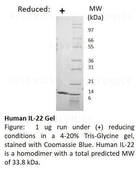 Interleukin 22 (IL-22), also called IL-TIF, is an IL-10 family member that is produced by activated dendritic cells and T lymphocytes. IL-22 signals via a heteroduplex receptor consisting of IL-22R and IL-10RB chains. IL-22 is a potent mediator of cellular inflammatory responses.