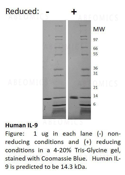 Interleukin 9 (IL-9) is a cytokine produced by type 2 T helper (Th2) cells and regulates hematopoietic cells. IL-9 signals through the interleukin 9 receptor (IL9R) to activate STAT signaling. IL-9 functions to induce cell proliferation, prevent cell apoptosis, and is associated with asthma and airway hyperresponsiveness.