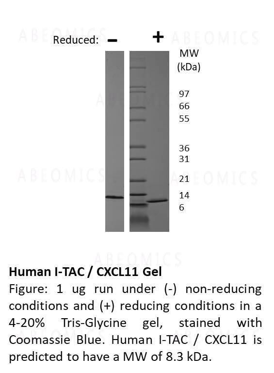 Interferon-inducible T cell alpha chemoattractant (I-TAC), or CXCL11, is expressed at high levels in leukocytes, pancreas, and liver cells. I-TAC gene expression is induced by interferons alpha (IFN-alpha), beta (IFN-beta ), and gamma (IFN-gamma). I-TAC is the dominant ligand known to bind the chemokine receptor CXCR3, thus acting as a stronge agonist. I-TAC functions as a chemoattractant for interleukin 2 (IL-2)-activated T cells.