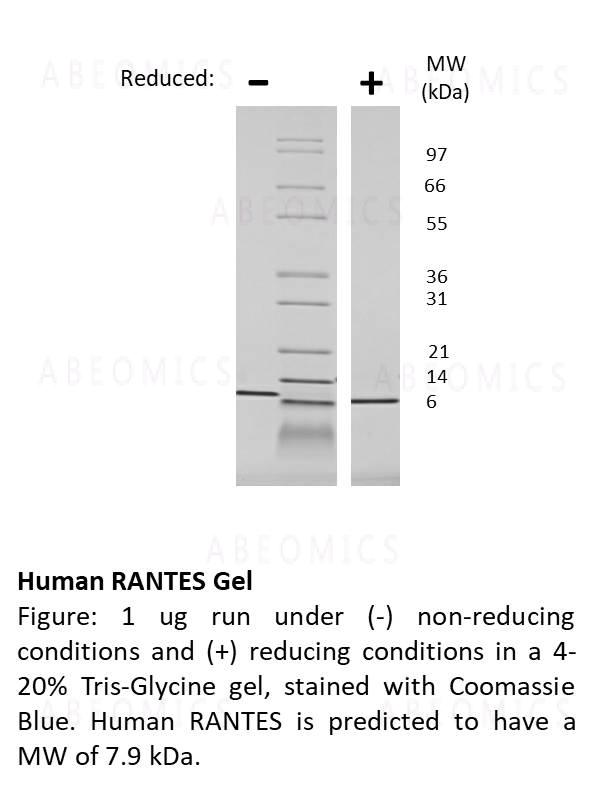 Regulated upon activation, normal T cell expressed and secreted (RANTES), also called CCL5, is a chemokine produced by T cells three to five days after T cell activation. RANTES signals through G protein-coupled receptors CCR5, CCR3, CCR1, and through the human CMV-encoded viral receptor US28. RANTES functions to recruit immune cells to inflammatory sites.
