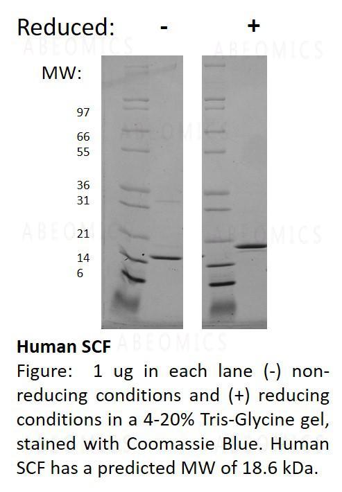 Stem cell factor (SCF) is a cytokine made by fibroblasts and endothelial cells. SCF binds to the receptor c-Kit/CD117 and plays a critical role in the maintenance, survival, and differentiation of hematopoietic stem cells. While human SCF shows no activity on murine cells, murine and rat SCF are active on human cells.