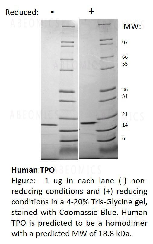 Thrombopoietin (TPO) is a growth factor that is produced by liver and kidney tissues. TPO binds the TPO receptor (CD110) to promote megakaryocyte maturation, differentiation, and the production of platelets.