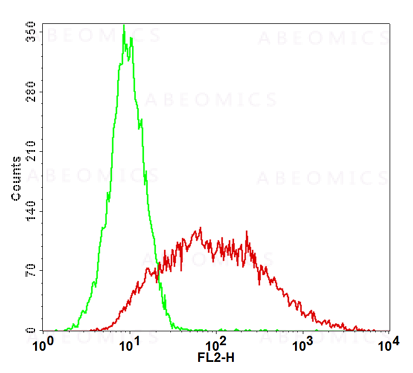 Fig-1: Detection of human Langerin in the CHO-K1/Langerin stable cell line by Flow Cytometry [Cell surface staining]. CHO-K1 cells (Green); CHO-K1/Langerin cells (Red).